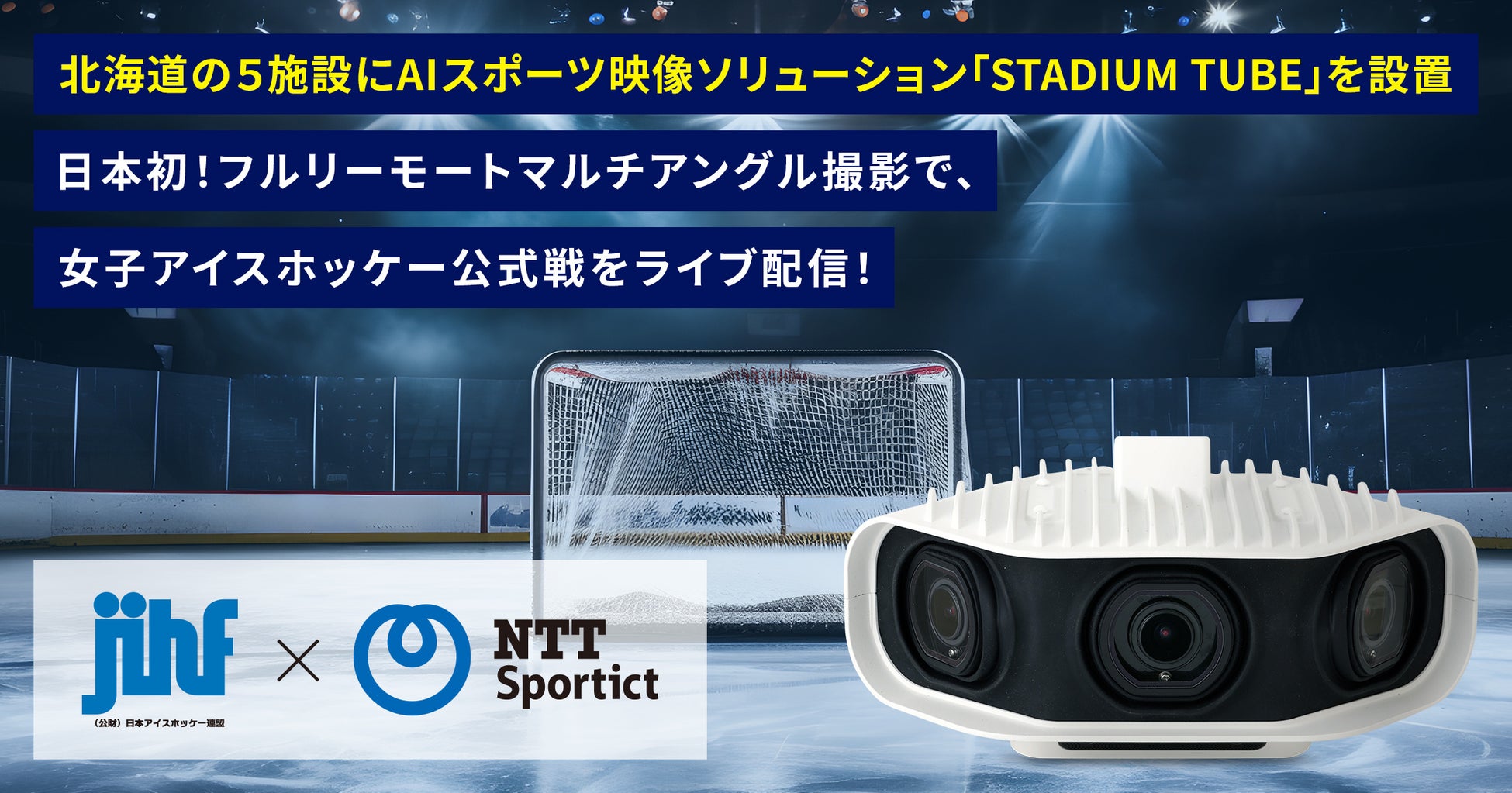 公益財団法人日本アイスホッケー連盟(新宿区霞ヶ丘町 会長 藤木幸太、以下日本アイスホッケー連盟 )と株式会社NTTSportict(⼤阪市都島区 代表取締役社⻑ 中村正敏、以下 NTTSportict)は共同で、2024年2月23日から開催される女子アイスホッケーリーグのファイナルと、3月7日から開催される全日本女子アイスホッケー選手権大会を日本初となるAIカメラを活用したフルリモートマルチアングル撮影でライブ配信いたします。