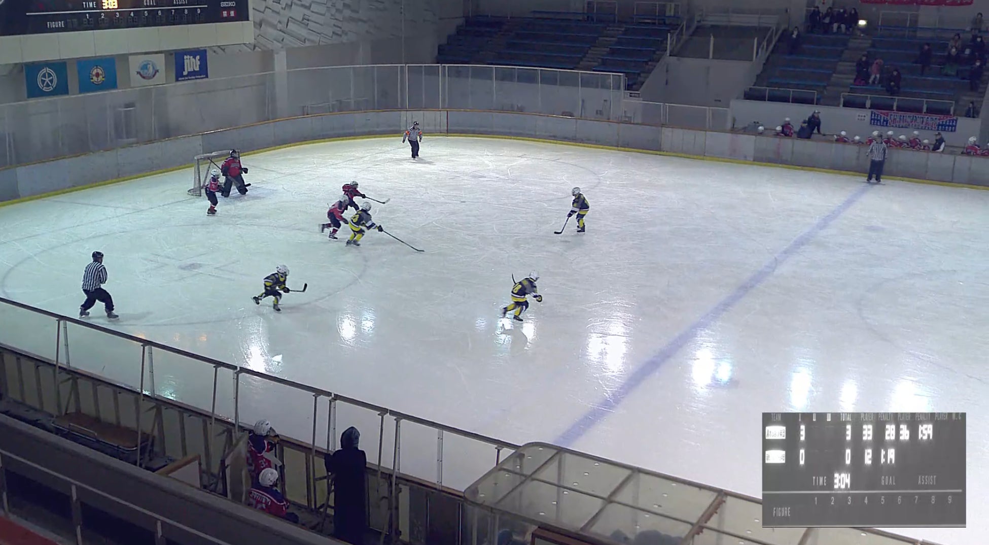帯広の森スポーツセンターで⾏われた⼩学⽣のアイスホッケーの⼤会を撮影した際の視聴画⾯
