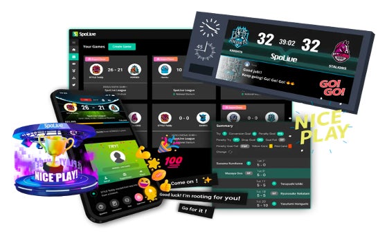 NTTSportictのAIカメラによる試合の映像配信(ライブ、アーカイブ)および、応援コミュニティプラットフォーム(SpoLive)で大会用サイトを開設し、応援チャット、試合結果速報等を行います。
