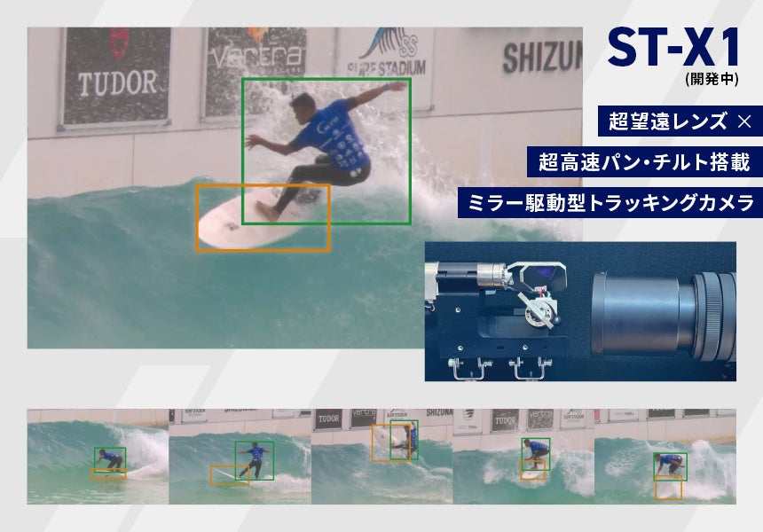 開発したカメラは、競技者を検出し自動で追尾撮影する機能に加え、ミラーの反射を利用した構造を採用。カメラヘッドは固定したまま、ミラーの角度をコントロールすることで俊敏なパン/チルト(カメラの向きを左右上下に向ける動作)を可能にしました。この構造により、競技者の素早い動きに対応するトラッキングを実現。サーフィン、フィギュアスケートをはじめ、スケートボードや BMX など高さや速さを追求したアーバンスポーツなど、開発したトラッキングカメラの特性にマッチした競技をはじめ多方面での活用を検討中。
